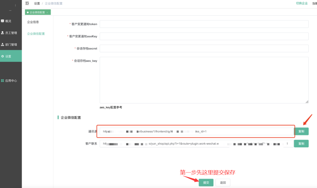 2、配置企业微信/创建应用/通讯录/客户管理等参数设置